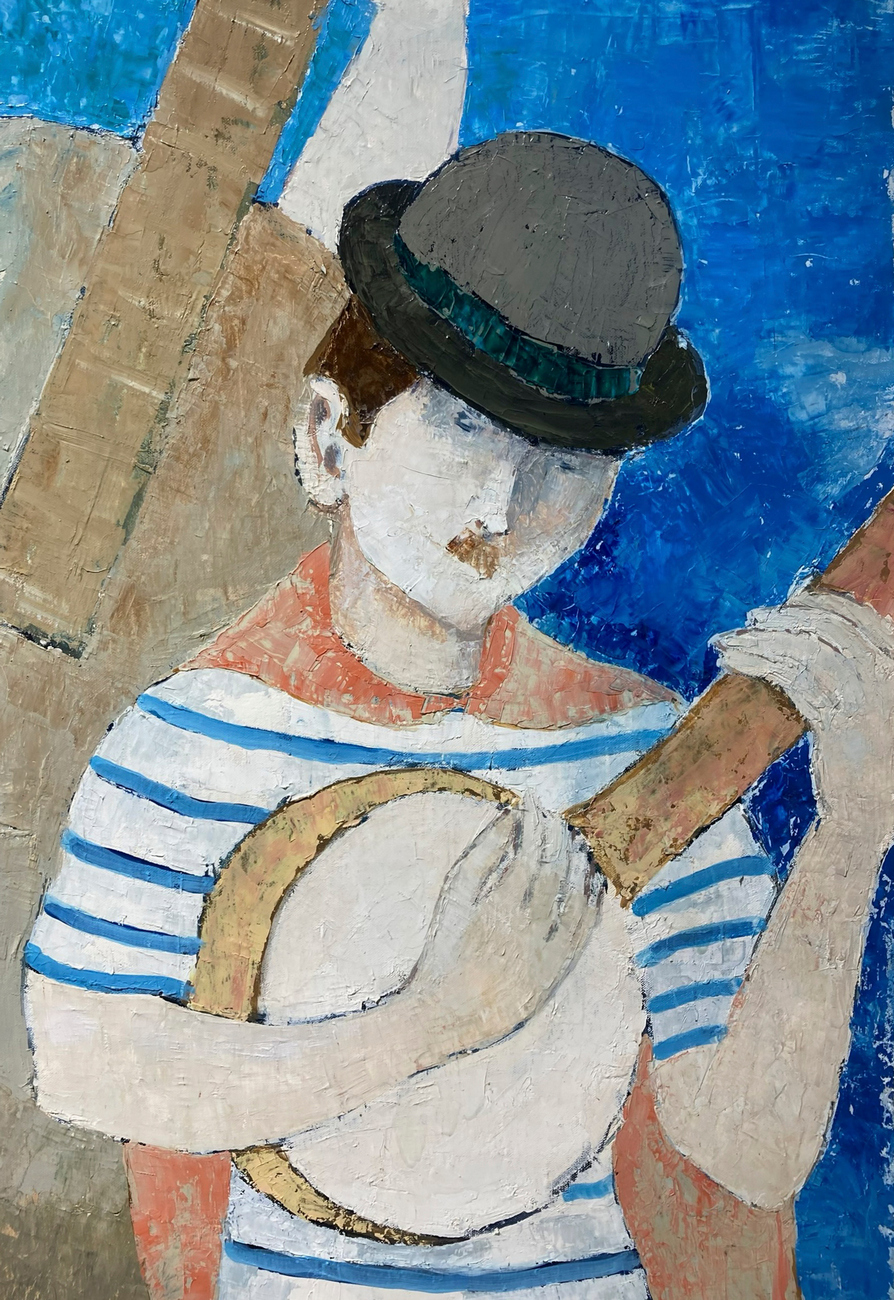 Max Dissar(1908-1993),dipinto ad olio su tela “le musicien” , firmato in basso al centro Max Dissar e datato ‘75. Cm 73x92, in cornice cm 112x92