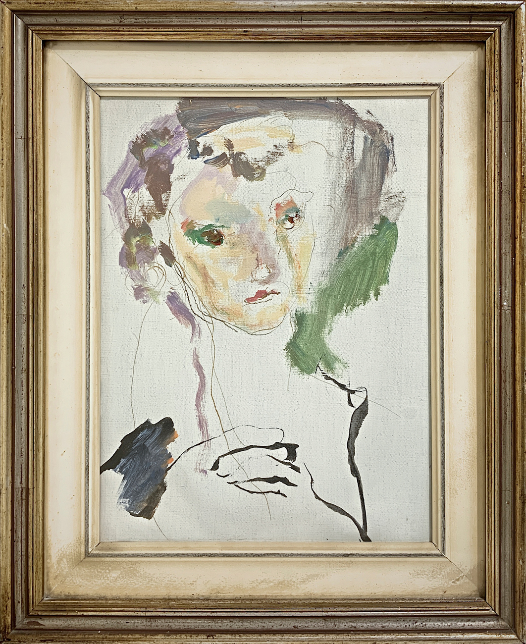 Ernesto Treccani , olio su tela raffigurante figura volto . Cm 30x40, in cornice 54x45