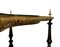 Tavolinetto etagere in legno laccato ebanizzato nero a quattro ripiani smerlati e bordati in ottone dorato. Base con ruo
