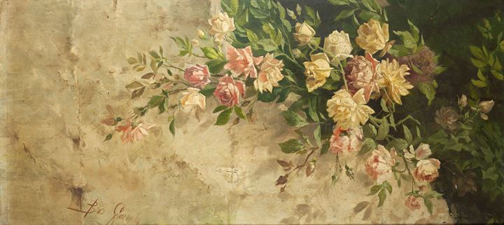 BO GIACINTO Torino 1832 - 1925 Montanaro (TO) "Fiori" 134x64 olio su tela...