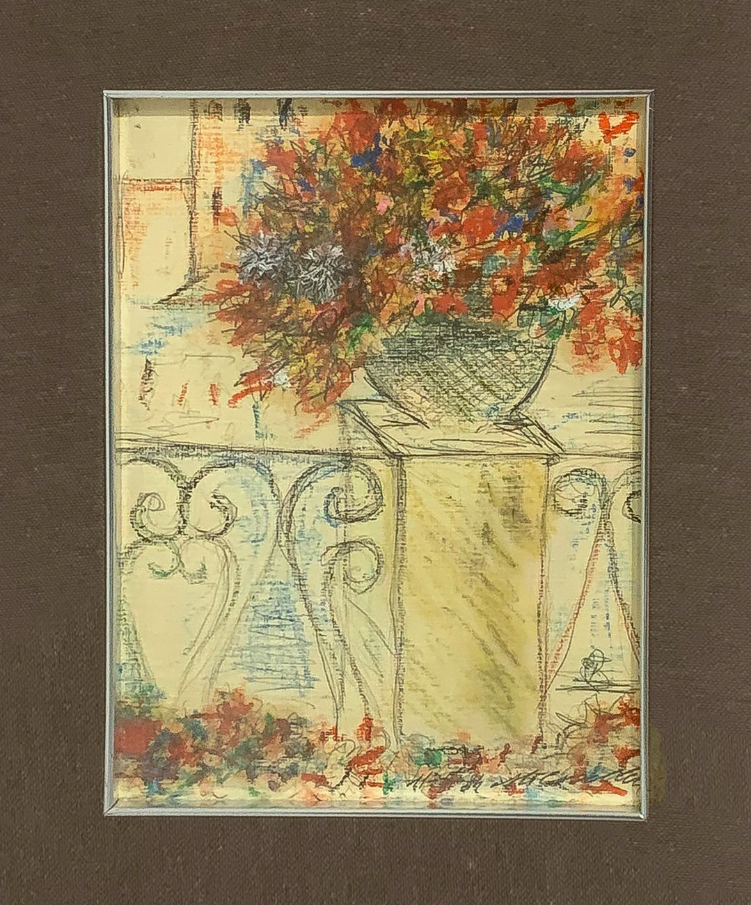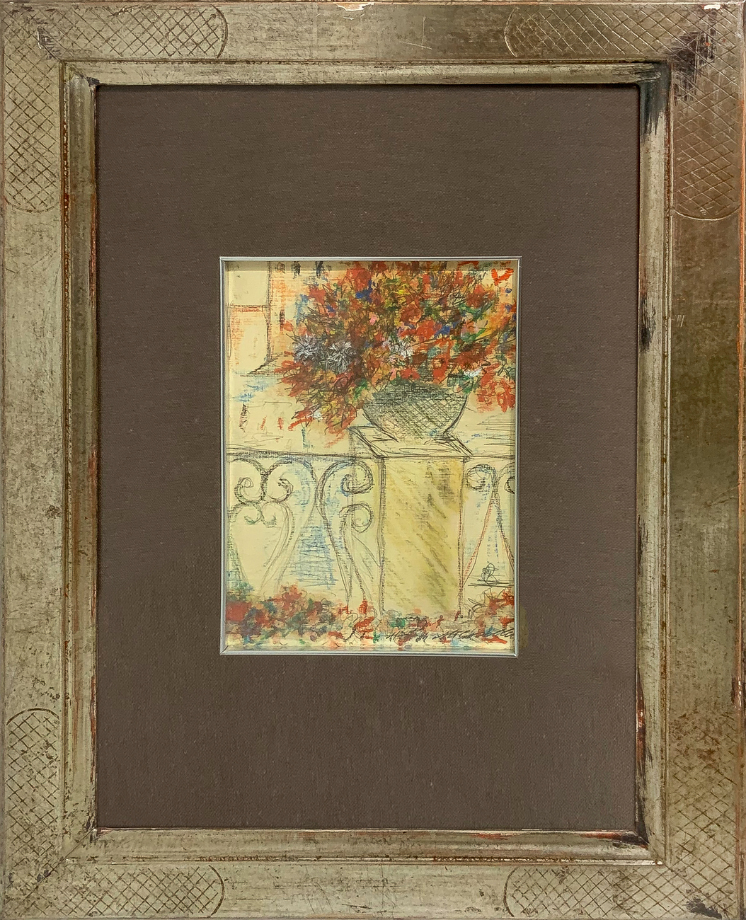 Cascella Michele (Ortona 1892- 1989 Milano), dipinto tecnica mista matita, carboncino e pastello, carta applicata a tela raffigurante fiori, firmato e datato Michele Cascella 18/02/84. Cm 28x20, in cornice di legno argentata a foglia cm 62x47