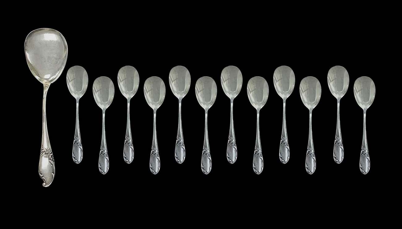 Servizio di posate da gelato in argento composto da pala grande e n .12 palette gelato (250 gr)