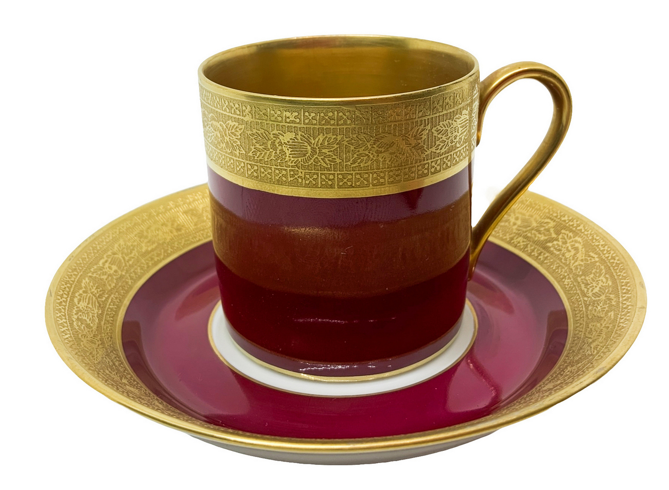 Piccolo servizio caffè tete a tete in porcellana Aofi Porzellan Manufaktur Bavaria,con decorazione in oro e rosso, compo