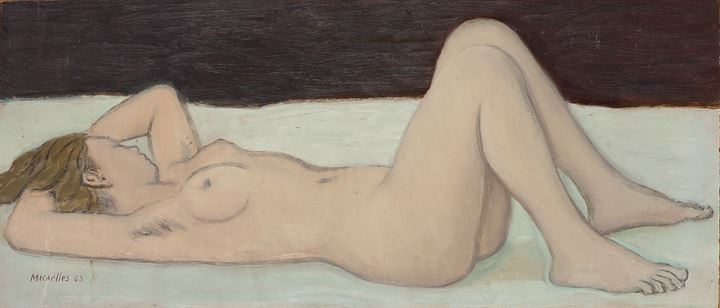 RAM (Ruggero Alfredo Michahelles) "Nuda distesa" 1963 30x70 olio su masonite...