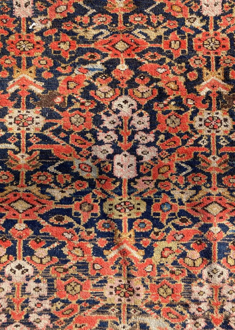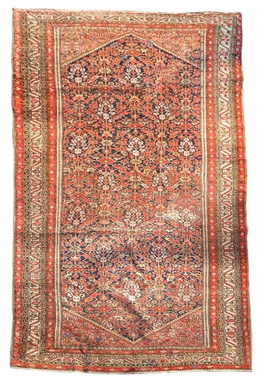 Tappeto Malayer, cm 400x195. Persia occidentale. Epoca 1940-50. Ordito e trama in cotone, vello e lana. Zone consunte.