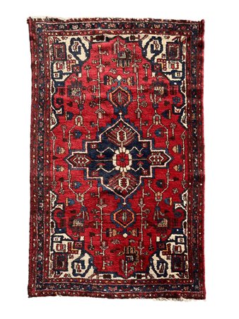 Tappeto Mossul, Persia, 100% lana, nei toni del rosso. Cm 200x127
