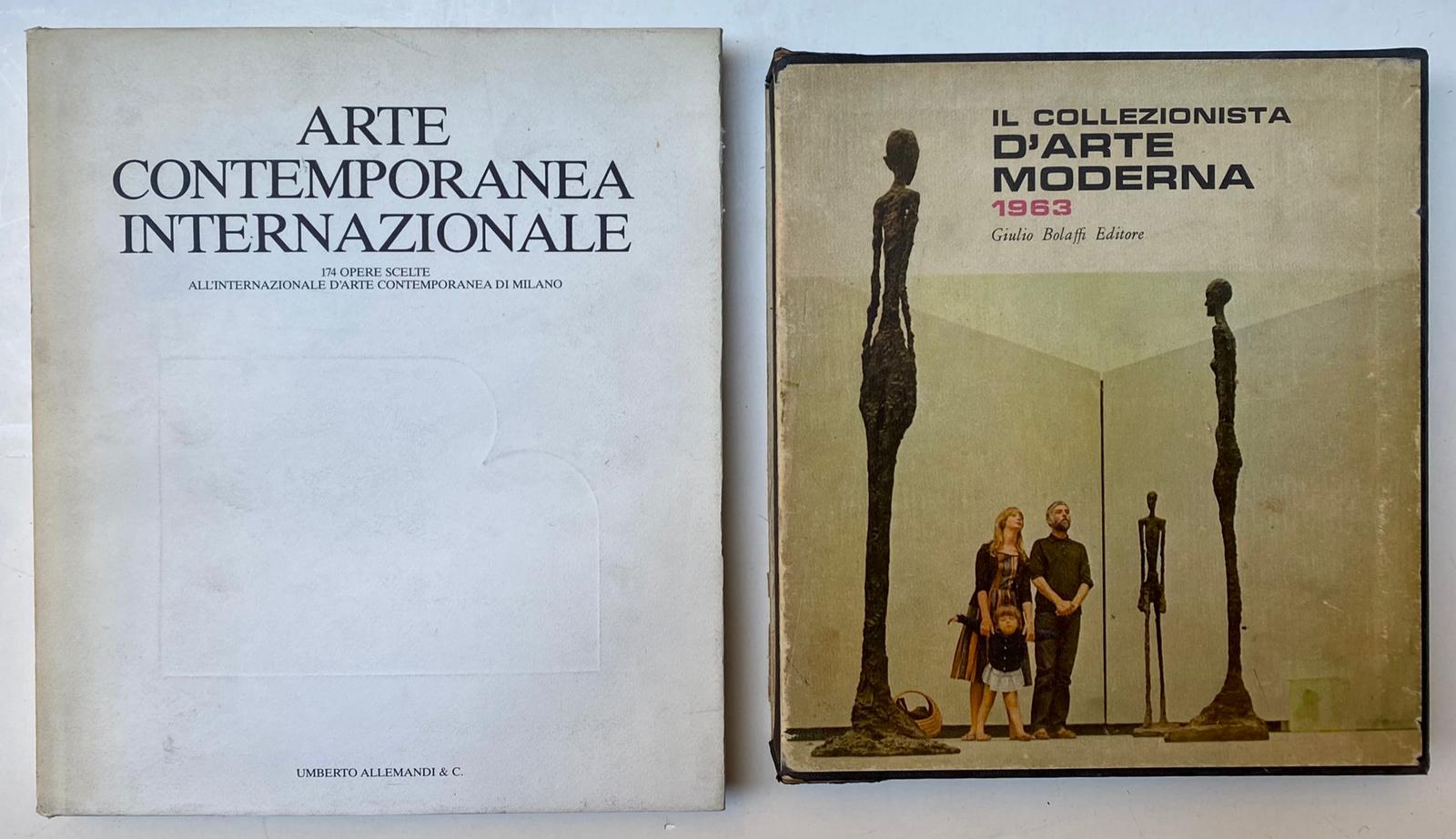 ARTE MODERNA E CONTEMPORANEA Arte contemporana internazionale. 174 opere scelte all’internazionale d’arte contemporanea di Milano, 1987 Catalogo riccamente illustrato, edito in occasione della seconda edizione della mostra Internazionale d’Arte Contemporanea, organizzata dall’Associazione Nazionale Gallerie d’Arte Moderna, Milano, 1987 Umberto Allemandi & C., Milano Cm 28x25 Pag 174Il collezionista d’arte moderna, 1963 Annuario riccamente illustrato della vita artistica italiana nella stagione 1961-1962, a cura di Luigi Carluccio Giulio Bolaffi Editore, Torino Cm 25x23 Pag 358 Completo di cofanetto
