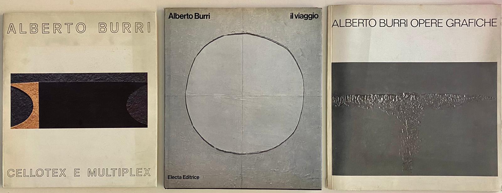 ALBERTO BURRI Alberto Burri. Cellotex e multiplex Catalogo riccamente illustrato Galleria Sanluca, Bologna Cm 31x27 Alberto Burri. Il viaggio, 1980 Catalogo riccamente illustrato Electa Editrice, Venezia Cm 32x28Alberto Burri. Opere grafiche Catalogo riccamente illustrato Galleria Sanluca, Bologna Cm 33x30 Pag 42