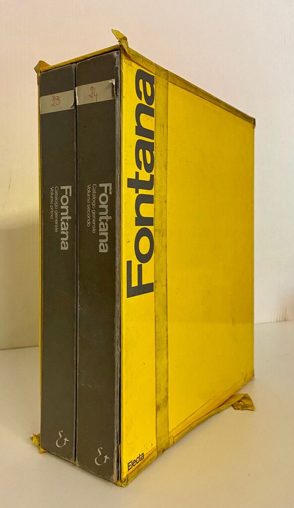 LUCIO FONTANA Lucio Fontana. Catalogo generale, 1986 Catalogo generale riccamente illustrato composto da due volumi, a cura di Enrico Crispolti Electa Editrice, Milano Cm 30x26 Pag 793 Completo di cofanetto danneggiato