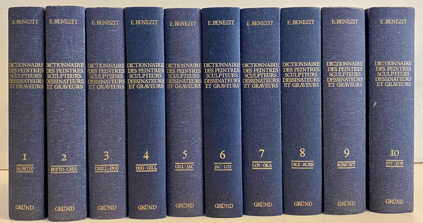 E. BENEZIT E. Benezit. Dictionaire des peintres, sculpteurs, dessinateurs et graveurs, 1976 Dizionario critico e documentario dei pittori, scultori, disegnatori e incisori di tutti i tempi e di tutti i paesi, composto da 10 volumi, a cura di E. Bénézit Librairie Gründ, Parigi Cm 25x17 Pag 1000 circa cadauno