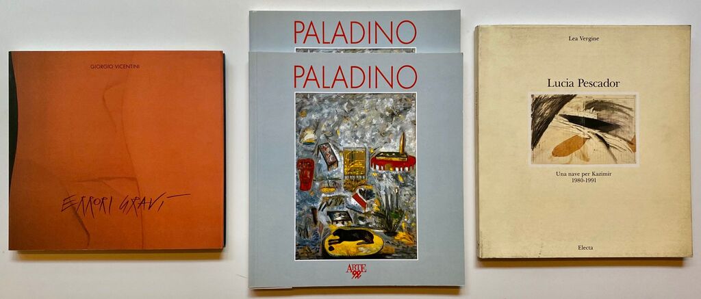 Lucia Pescador. Una nave per Kazimir 1980-1991, 1992 Catalogo riccamente illustrato, a cura di Lea Vergine, edito in occasione della mostra dedicata all’artista, presso la Galleria del Credito Valtellinese-Refettorio delle Stelline, Milano, 1992 Electa Editrice, Milano Cm 24x22 Pag 87Giorgio Vicentini. Errori gravi, 1998 Catalogo riccamente illustrato, a cura di Claudio Cerritelli e Simonetta Lux Fidia Edizioni d’Arte-Lugano, Lugano Cm 20x22