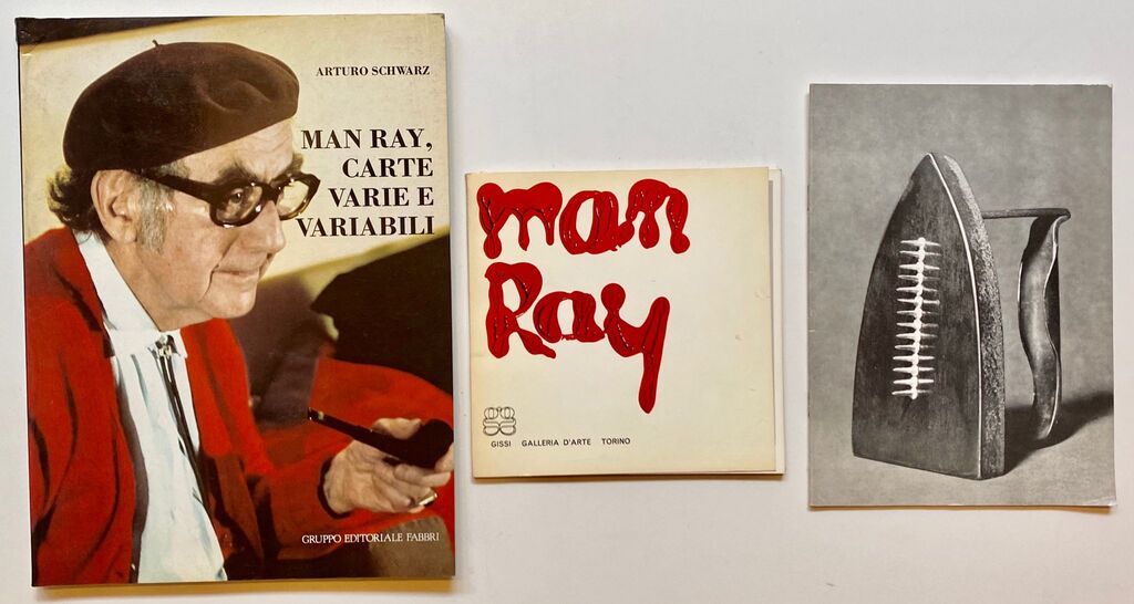 MAN RAY Man Ray. Carte varie e variabili, 1983 Catalogo riccamente illustrato, a cura di Arturo Schwarz Gruppo Editoriale Fabbri, Milano Cm 29x22 Pag 136 Man Ray Catalogo riccamente illustrato, con testo di Hans Richter Gissi Galleria d’Arte, Torino Cm 17x17 Copertina scollata lateralmenteMan Ray Catalogo riccamente illustrato Imp. Boselli, Parigi Cm 22x16 Edizione in lingua francese