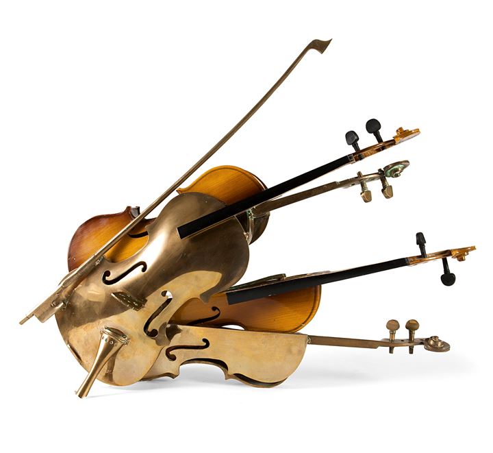 56x70x17 scultura in bronzo e frammenti di violino,