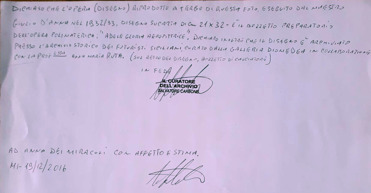 D'ANNA GIULIO Villanova (Me) 1908 Adele gloria neropittrice 1932 Disegno su...