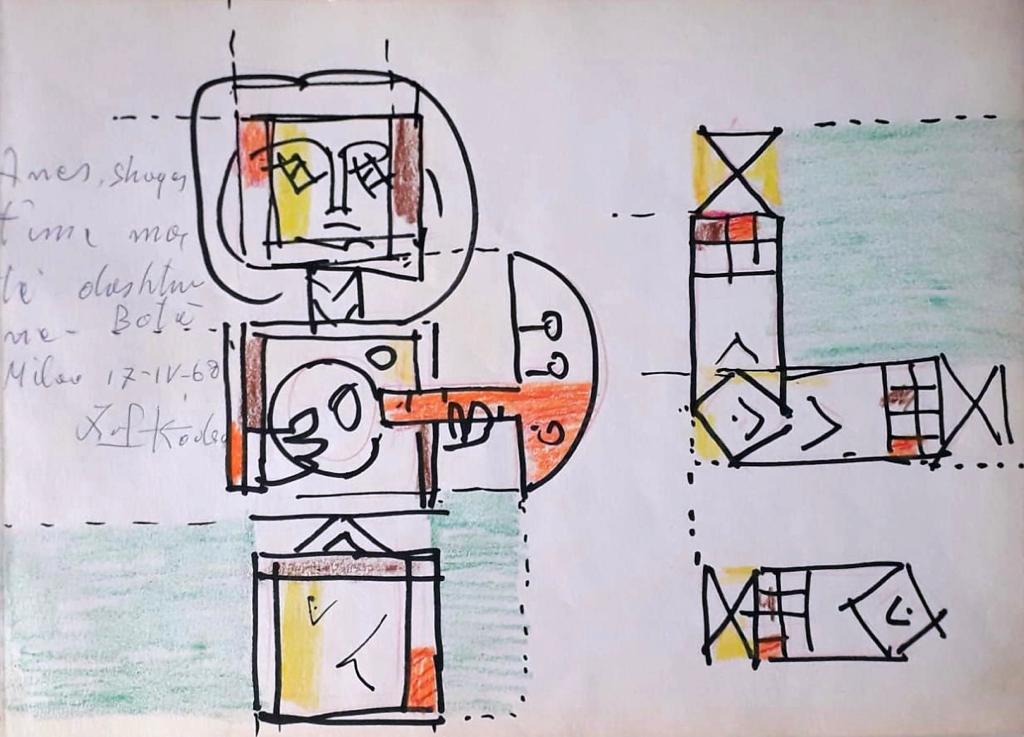 KODRA IBRAHIM Ishëm (Albania) 1918 Senza titolo 1968 Mista su carta...