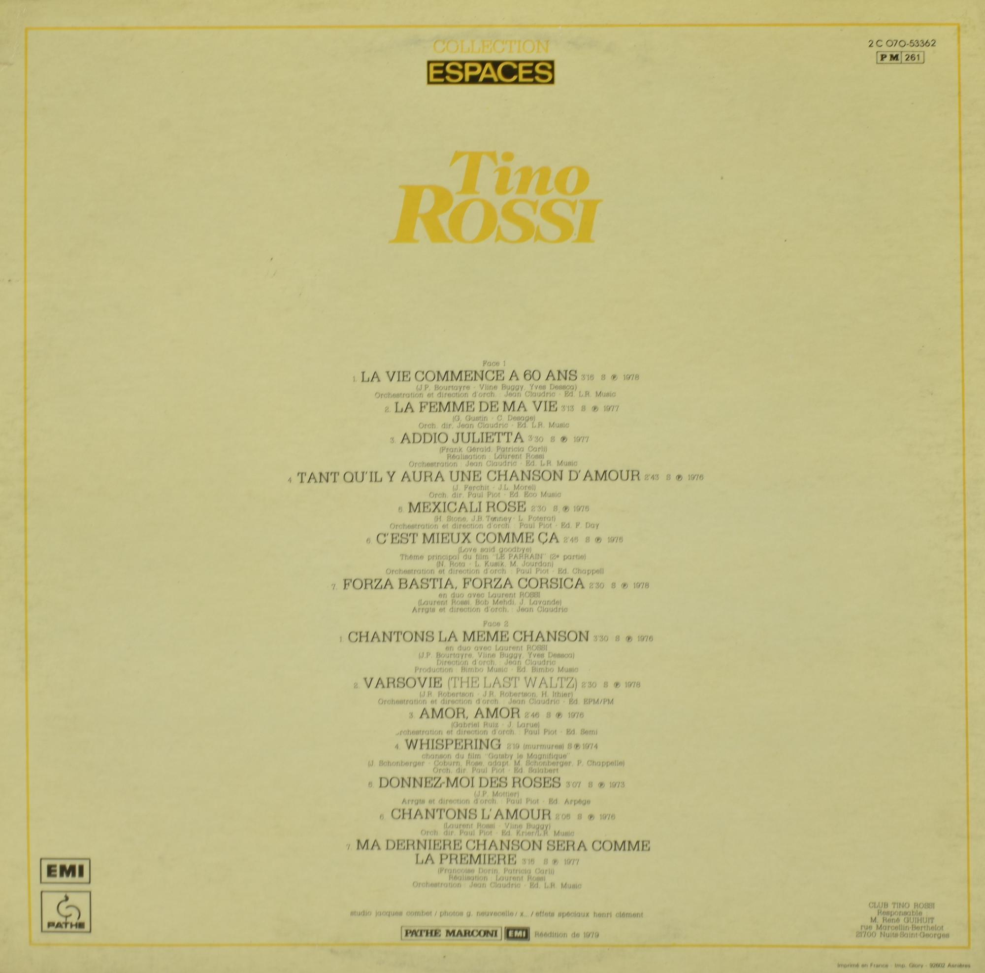 Tino Rossi TINO ROSSI LP 33 giri, riedito, EMI collection Espaces, 1979