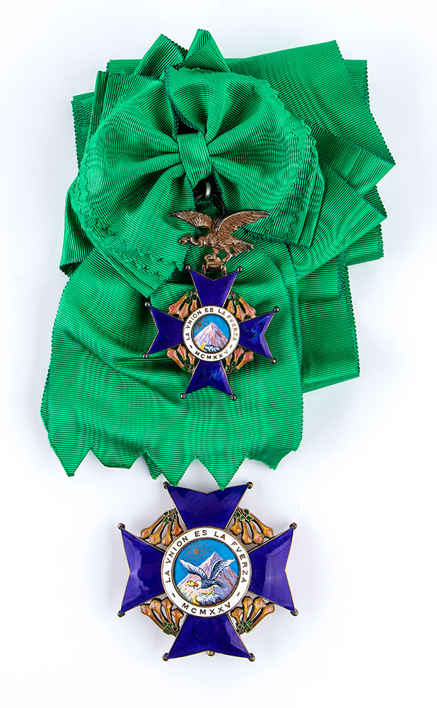 Bolivia, Ordine nazionale del Condor delle Ande, Insenga di Gran Croce Insegna di gran Croce , placca e fascia con pendente, lo smalto del pendente ha diverse felature ballo smalto