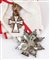 Danimarca, Ordine del Daneborg, set di Gran Croce, epoca Federico IX, 1947-1972 Placca e pendente con fascia, raffinata manifattura del periodo Federico IX, croce centrale con quattro rivetti, doppia spilla centrale, pendente con iniziali del sovrano regnante, fascia in seta.
