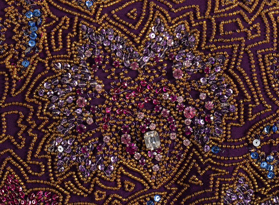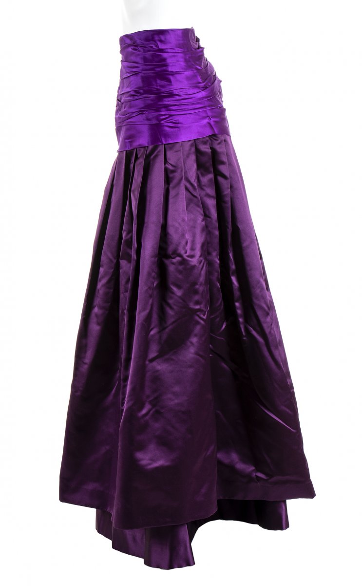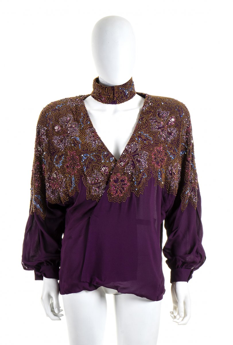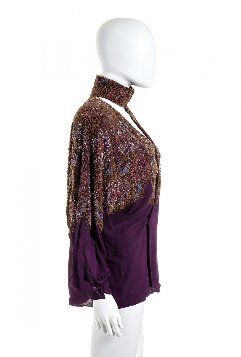 Anni ‘80 / Anni ‘90 Lotto di 4 articoli anni 80/90 Mila Schön Alta Moda: 2 gonne in seta viola, una blusa in seta blu scuro con ricamo di perline, una blusa in georgette viola con elaborato ricamo di perline e strass