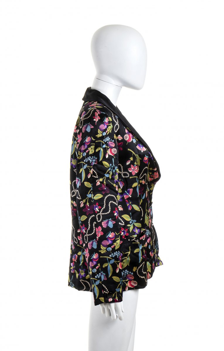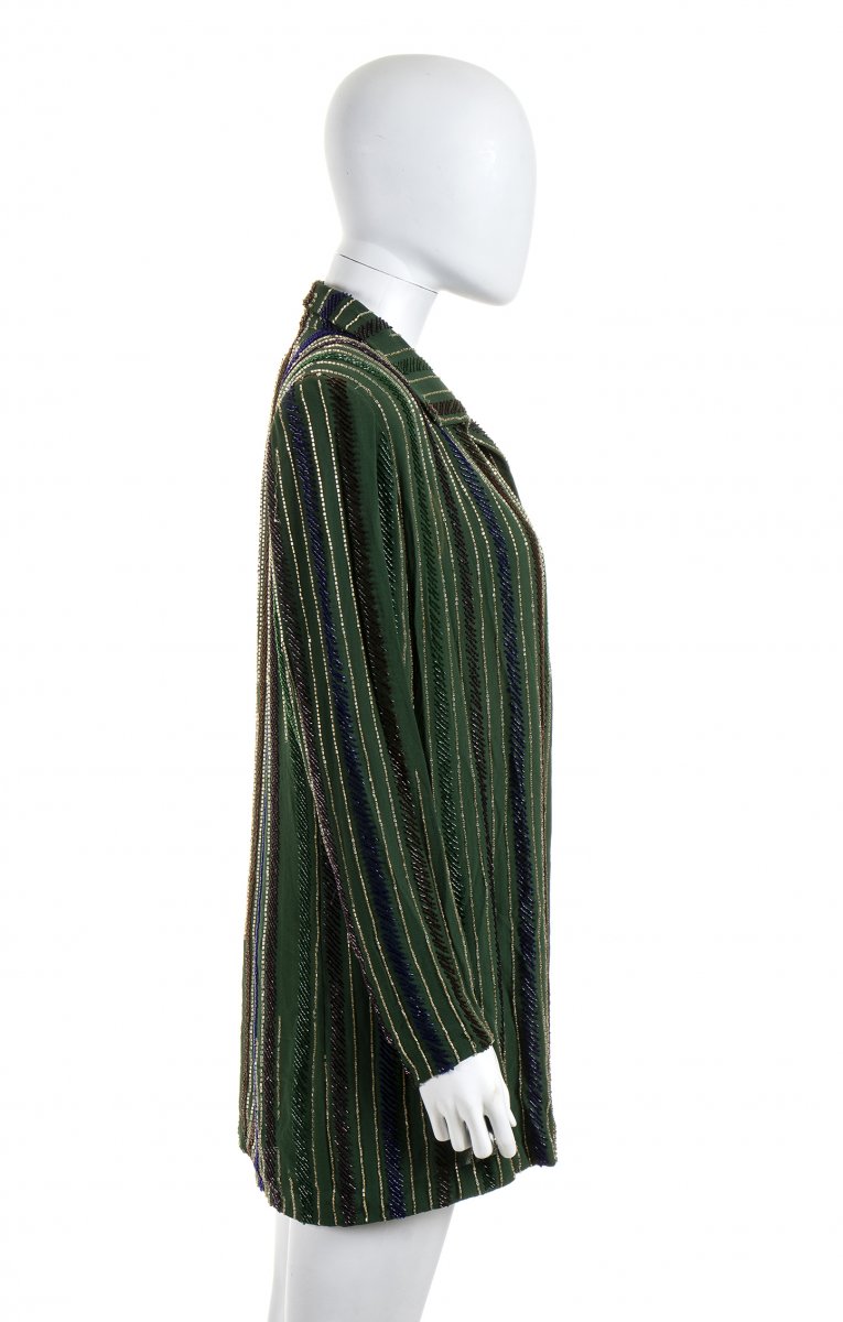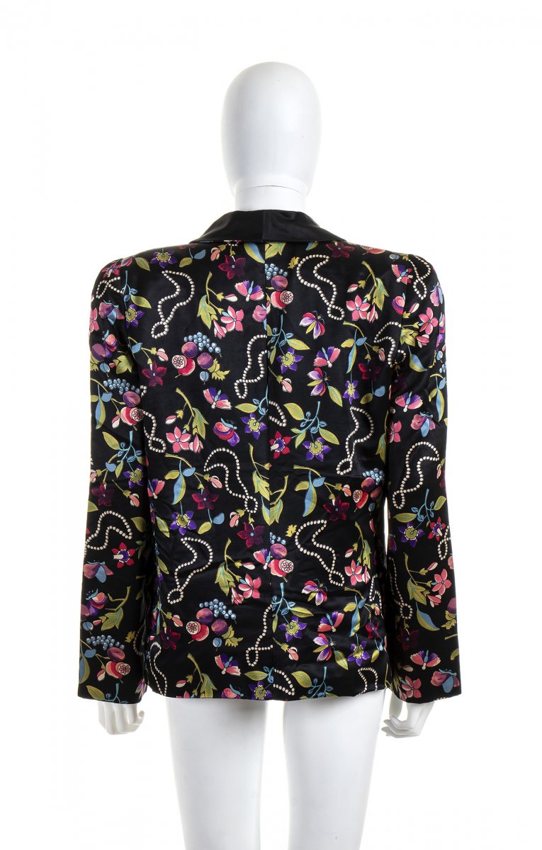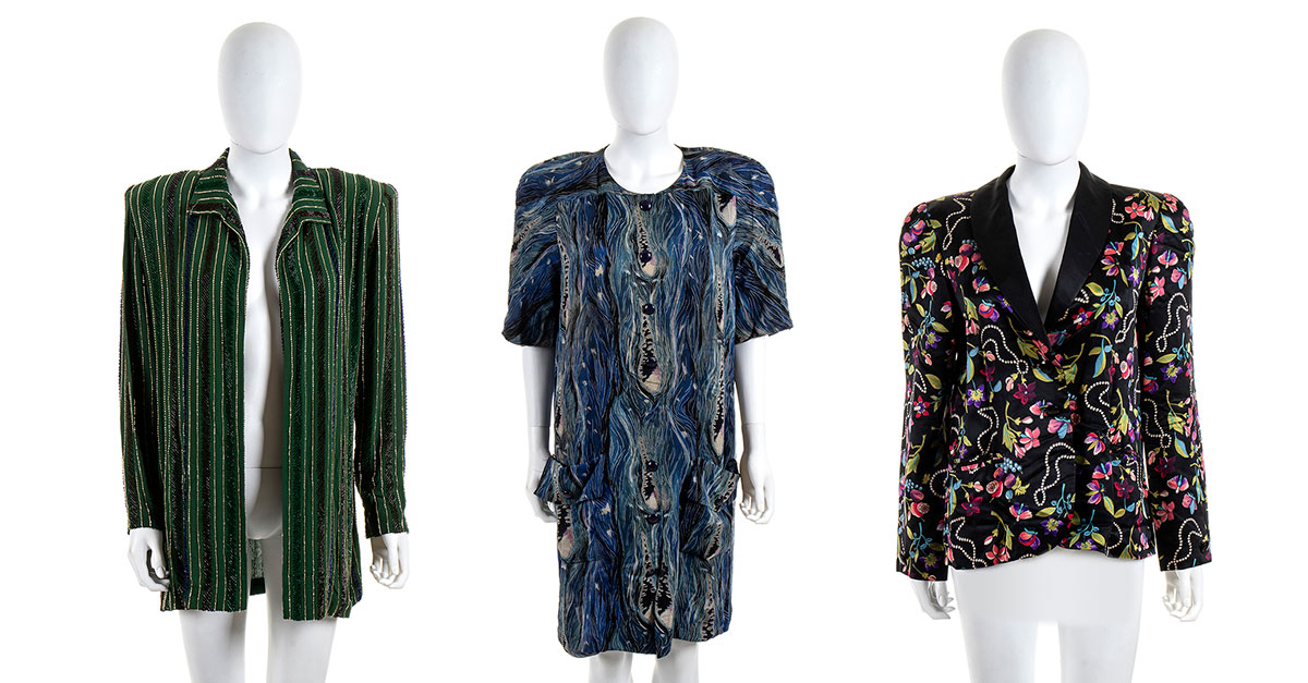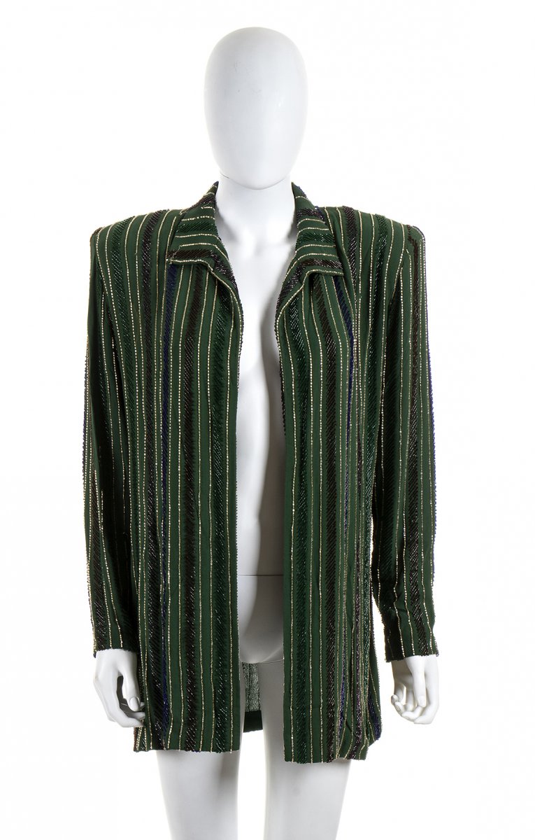 Anni ‘90 Lotto di 3 articoli anni 90 Mila Schön Alta Moda: giacca in seta verde ricamata con perline, abito in seta, giacca in seta nera con motivo floreale,
