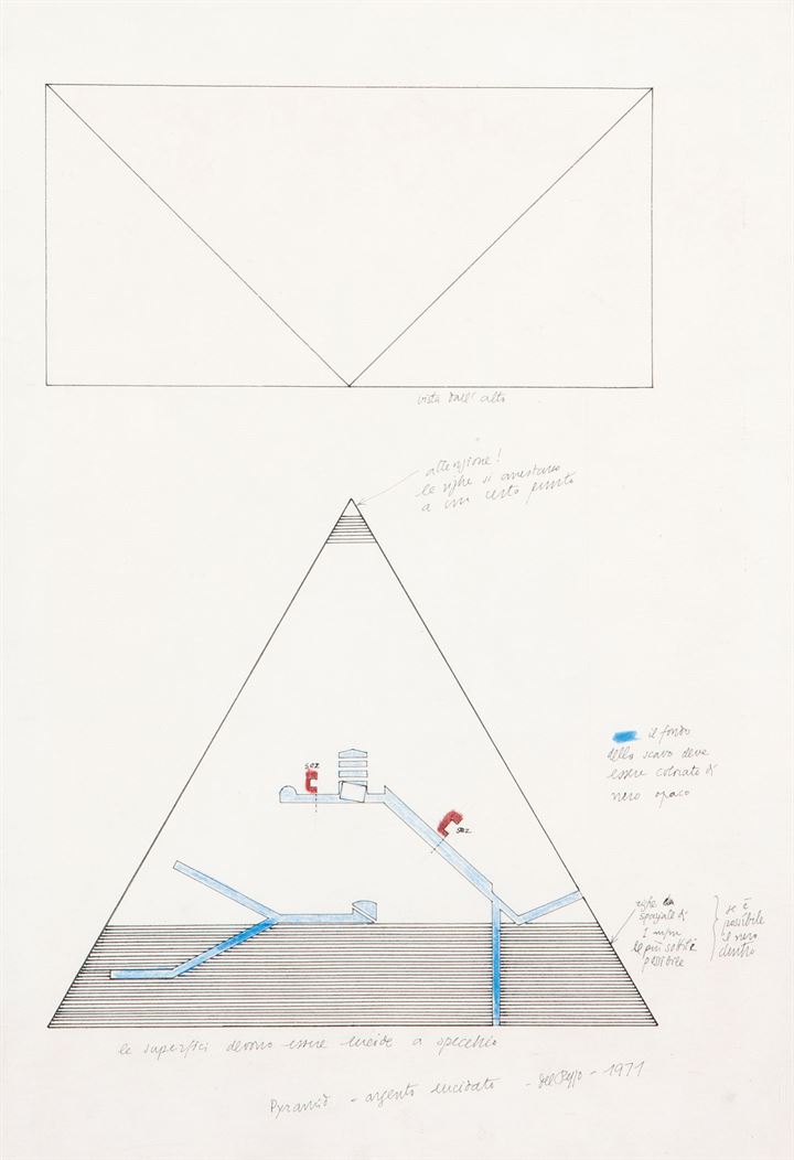 DEL PEZZO LUCIO Napoli 1933 "Pyramid" 1971 35x 24 matite su carta Opera...
