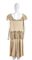 Completo in seta beige chiaro, dettagli ricamati a intaglio, perline