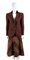 Autunno / Inverno 1987-1988 Completo (giacca e gonna) in lana gradazioni di bordeaux e marrone, dettaglio del collo in velluto marrone