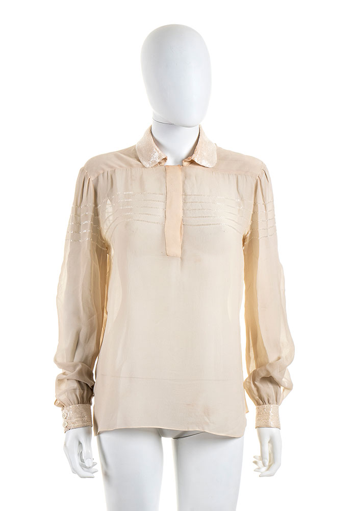 Anni ‘80 / Anni ‘90 Lotto di 4 articoli Mila Schön Due ,Mila Schön Alta Moda: blusa e camicia in seta avorio con dettagli ricamati, blusa in chiffon nero con elaborato ricamo, abito in crepe e velluto nero con ricamo