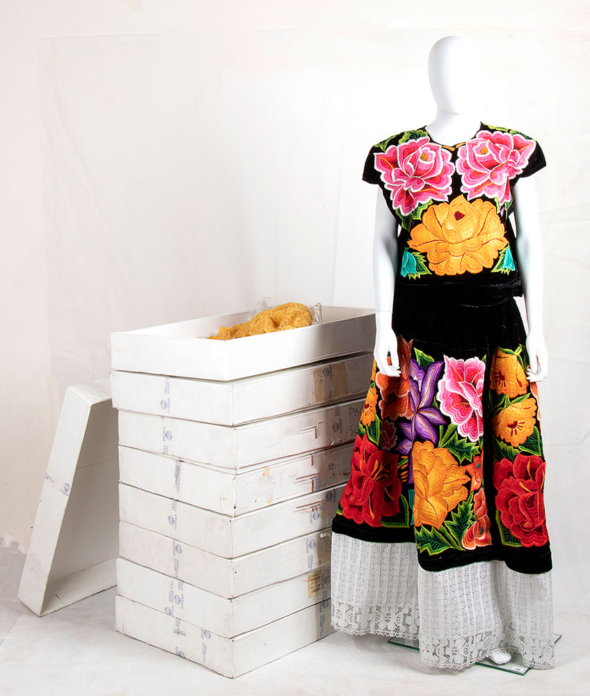 LOTTO DI 8 SCATOLE MISTE Lotto di 8 scatole miste con: costumi e accessori per il carnevale, abiti folk (fra cui un costume ricamato Tehuana), toghe, mantelli,