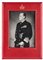 OLAV V, re di Norvegia - Alexander Edward Christian Fredrik (Sandringham, 2 luglio 1903 – Oslo, 17 gennaio 1991) Principe danese e successivamente monarca norvegese, comandante militare, foto b/n in uniforme della Marina Militare con firma autografa ad inchiostro blu, in elegante cornice in similpelle rossa con stemma della corona reale e profilature impresse in oro