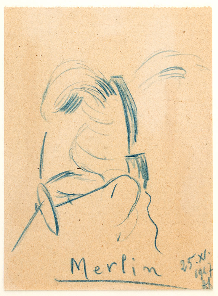 FANFANI, Amintore - Vignette e disegni - anni '40 - (Pieve Santo Stefano, 6 febbraio 1908 – Roma, 20 novembre 1999) Vignetta dal titolo "Merlin 25 Novembre 1947 " Firmata