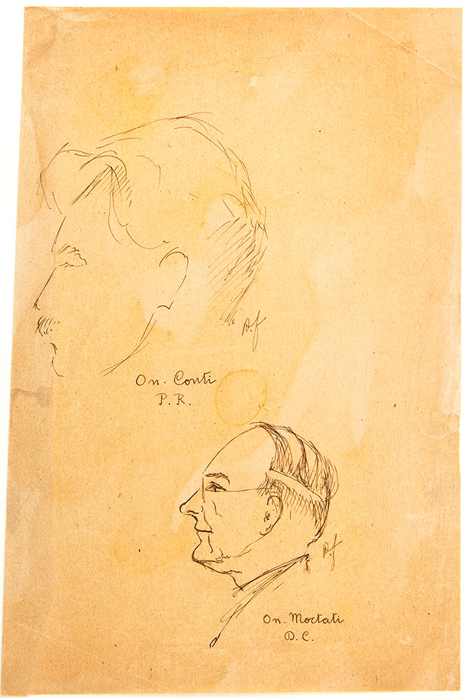 FANFANI, Amintore - Vignette e disegni - anni '40 - (Pieve Santo Stefano, 6 febbraio 1908 – Roma, 20 novembre 1999)