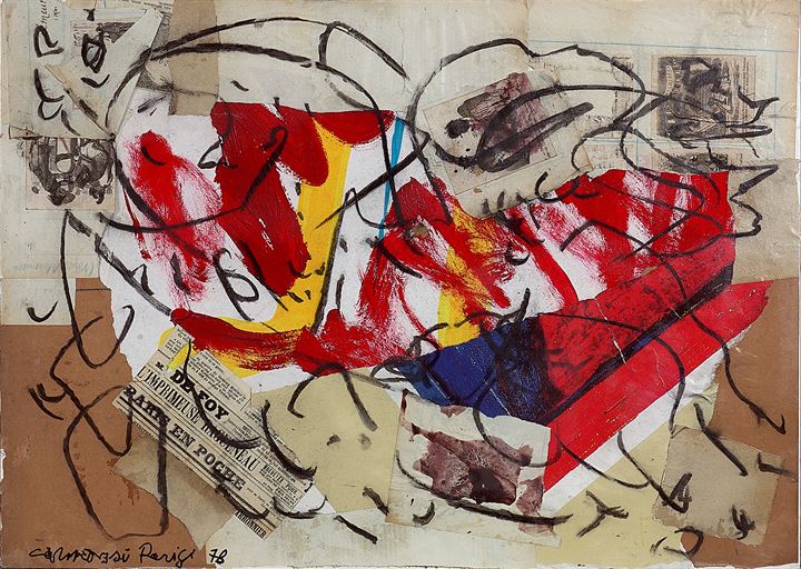 CARMASSI ARTURO Lucca 1925 "Senza titolo" Parigi 1978 50x70 collage e fusain...