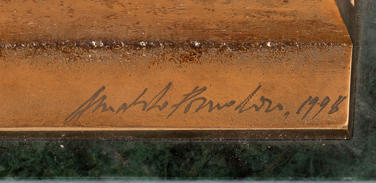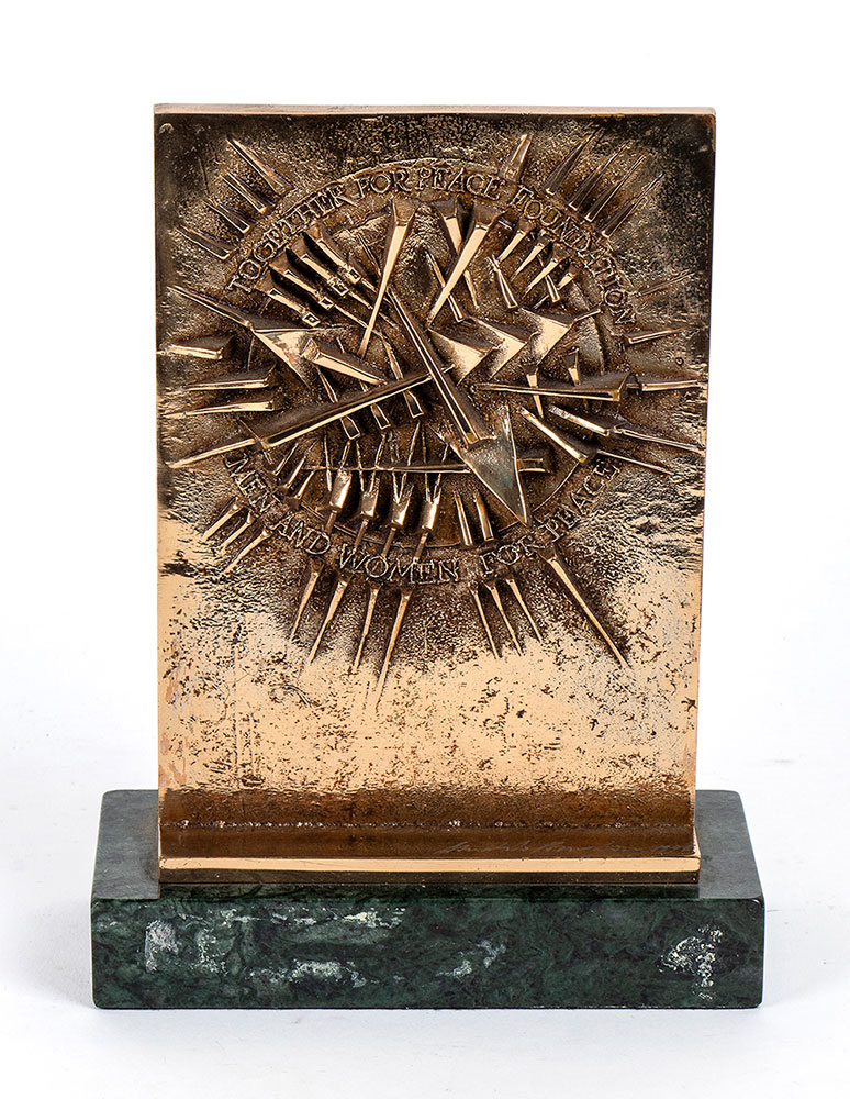 Pomodoro, Arnaldo (Morciano di Romagna, 23 giugno 1926) Bronzo multiplo commemorativo, TOGETHER FOR PEACE FOUNDATION, MEN AND WOMEN FOR PEACE, 1996 su base in marmo, firmato Arnaldo Pomodoro