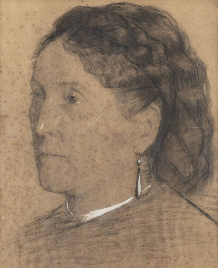 GIOVANNI BATTISTA QUADRONE<BR>Mondovì (CN) 1844 - 1898 Torino<BR>"Ritratto di donna con orecchino"