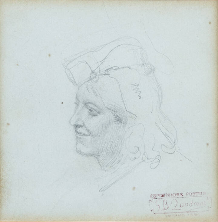 Esp. : - 1895, "Esposizione postuma di Giovan Battista Quadrone", (timbro in rosso su ogni schizzo)