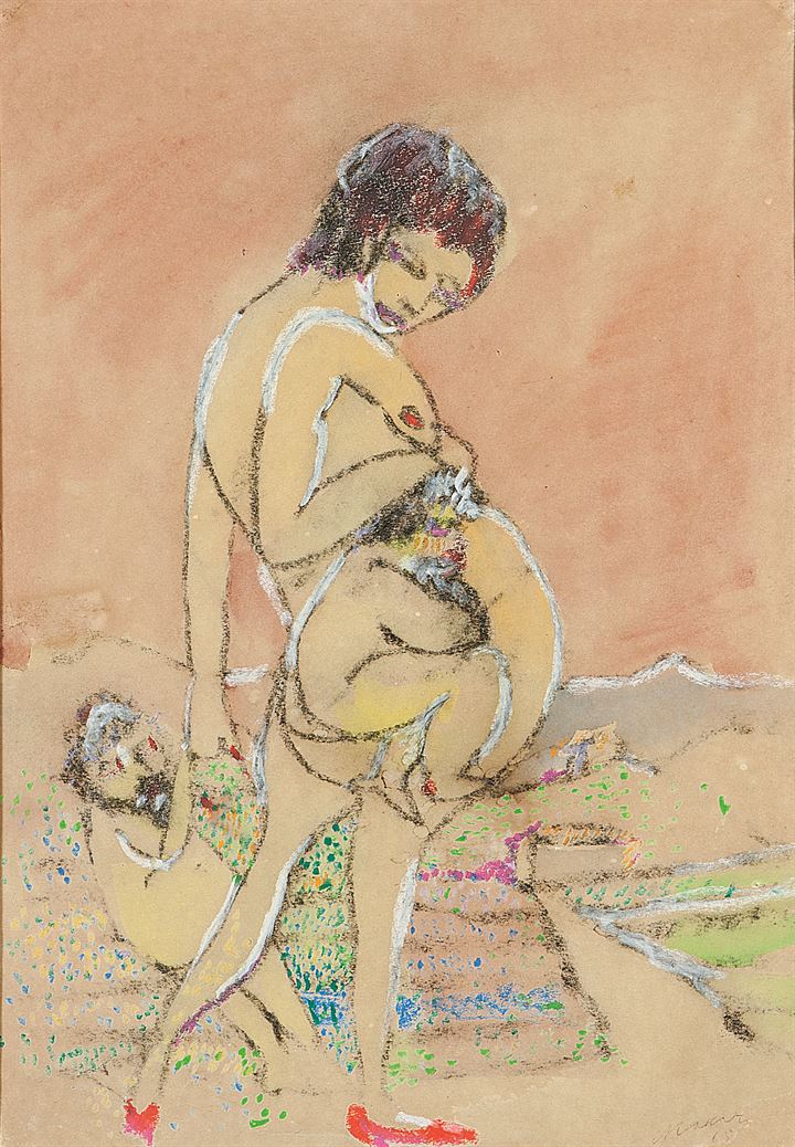 MACCARI MINO Siena 1898 - 1989 Roma "Maternità" 1965 48x33 olio su carta...