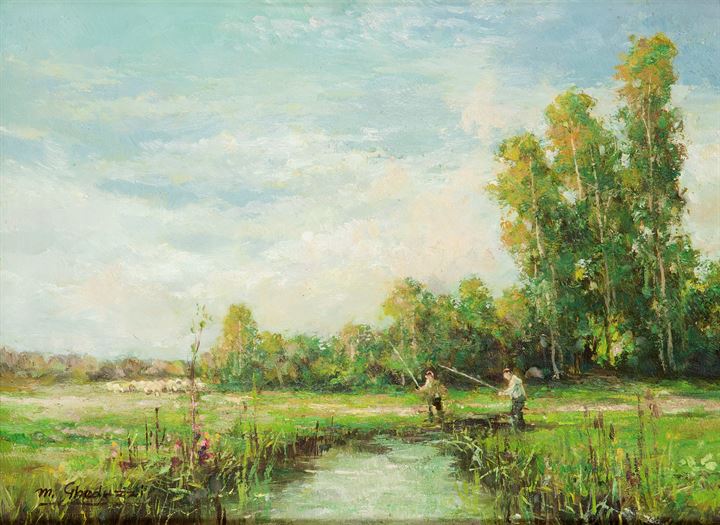 GHEDUZZI MARIO Crespellano (BO) 1891 - 1970 Torino La buca delle rane 30x39,5...