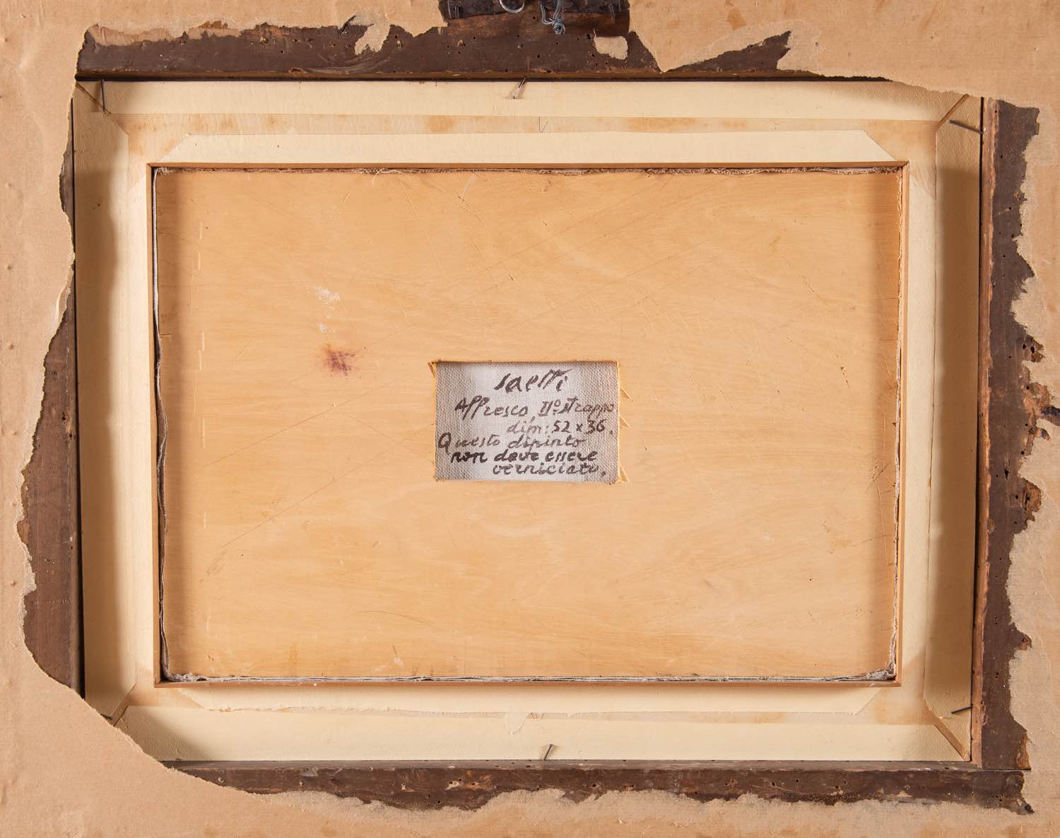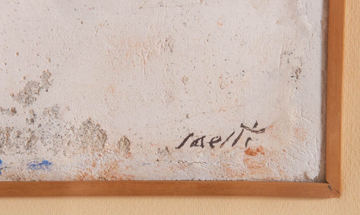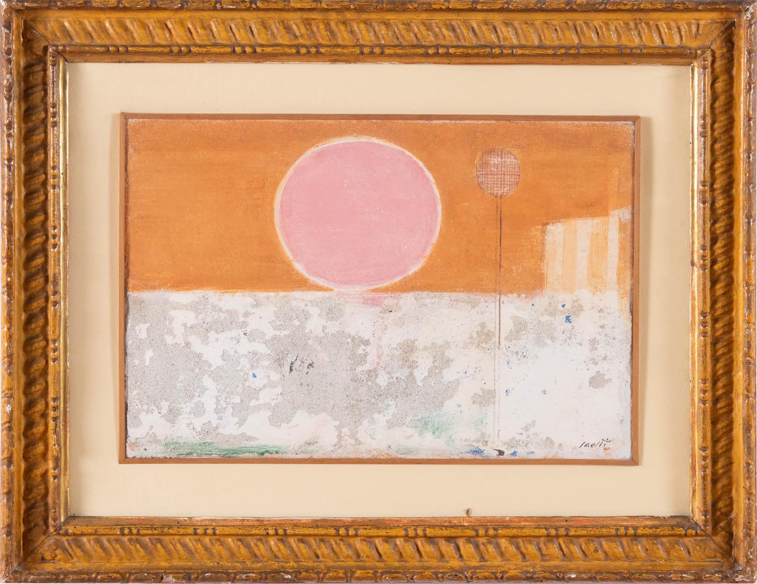 Bruno Saetti (Bologna 1902 - 1984), “Sole” Affresco su tela, firmato in basso a destra Saetti, firma Saetti al retro e iscrizione, H cm 36x52 Opera accompagnata da certificato di autenticità su fotografia a firma Saetti, 1978
