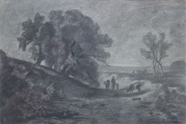 MERLO CAMILLO Torino 1856 - 1931 Pascolo 20x29 carboncino su carta Opera...