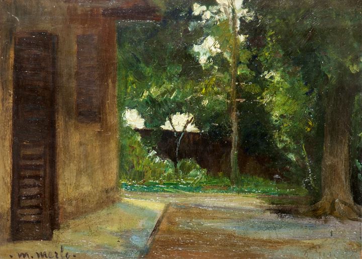MERLO METELLO Milano 1886 - 1964 Torino Giardino della villa 21x29,5 olio su...