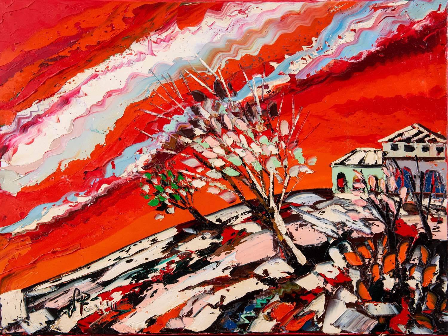 Nelu Pascu (Cosmesti 1963), “Paesaggio espressionista”, 2008. Olio su tela, firmato in basso a sinistra Pascu, al retro reca firma e data 2008, H cm 60x80