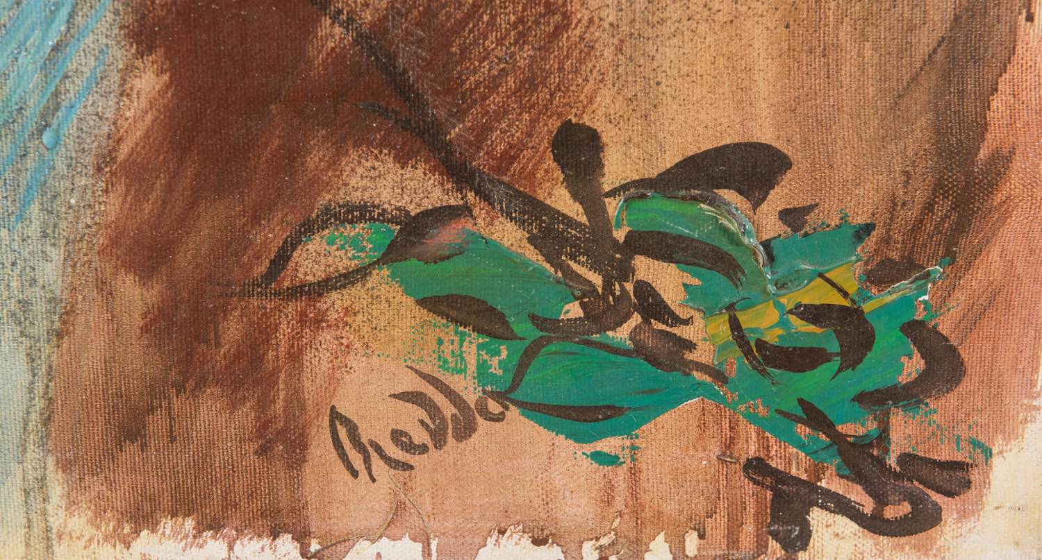 Gastone Breddo (Padova 1915 - Calenzano 1991), “Cartoccio di fiori”. Olio su tela, firmato in basso a destra Breddo, iscrizione al retro sul telaio, H cm 80x80 Al retro reca etichetta Contemporarte Gallerie - Firenze.