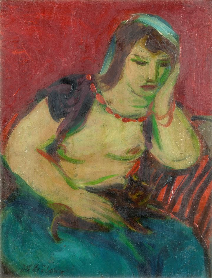 DA MILANO GIULIO F 1895 - 1990 Torino Ragazza col gatto 25x19 olio su tela...