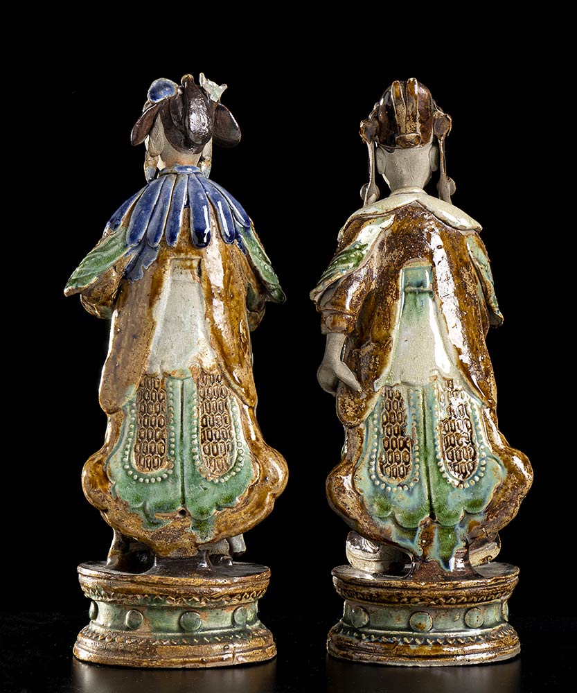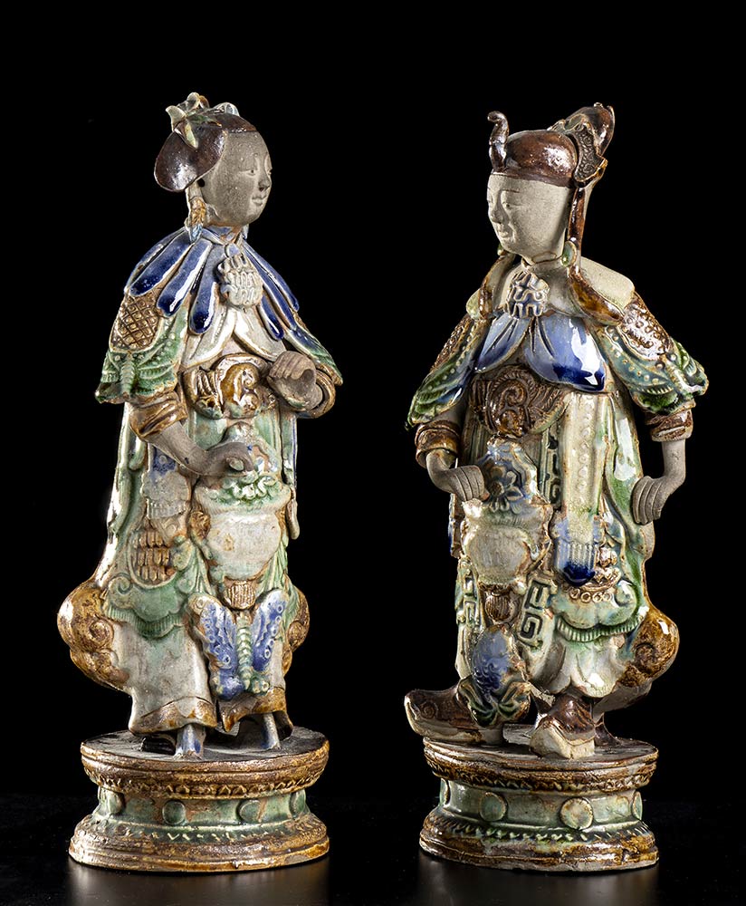 DUE FIGURE IN CERAMICA INVETRIATA DI SHIWAN<br>Cina, inizio del XX secolo