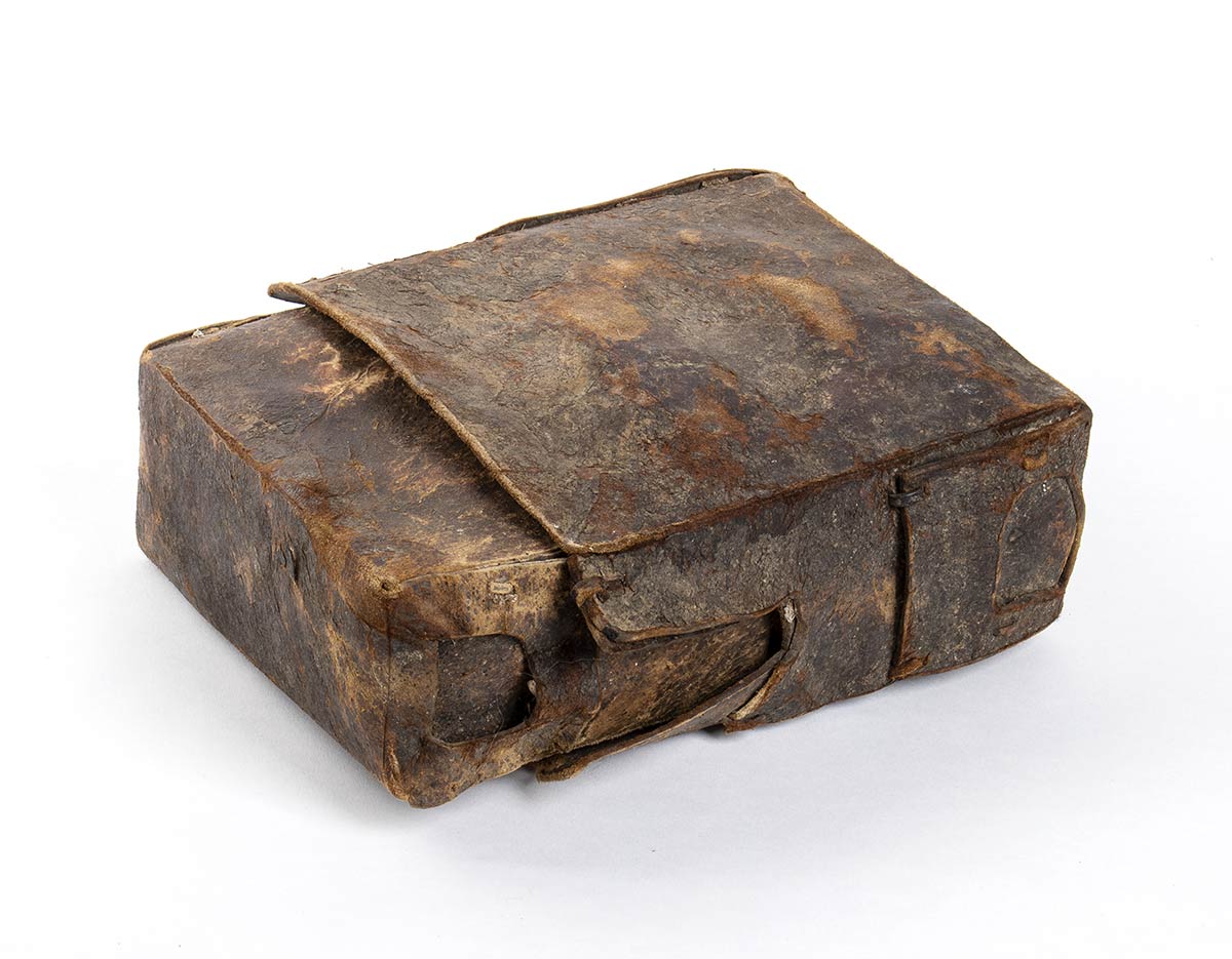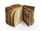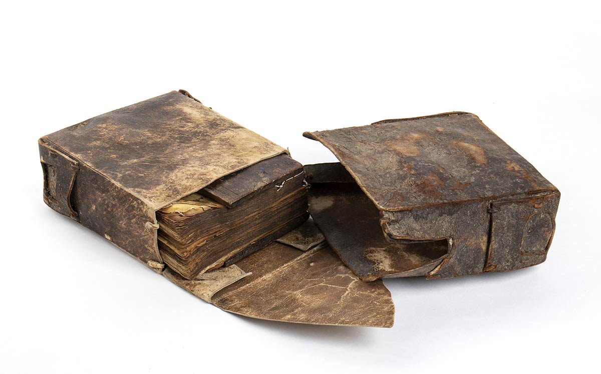 Legatura e custodia in pelle di capra, i fogli in pergamena, illustrazioni dipinte in policromia (San Giorgio e il drago; Gesù tra due angeli; Predica di Gesù).
