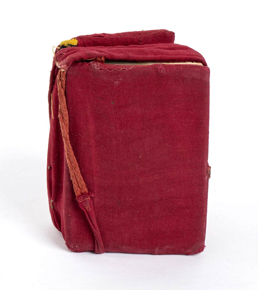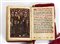 Copertina in legno rivestita di stoffa, i fogli in pergamena, quattro illustrazioni dipinte in policromia (San Giorgio e il drago; Gesù e gli apostoli per due volte; Tre santi).