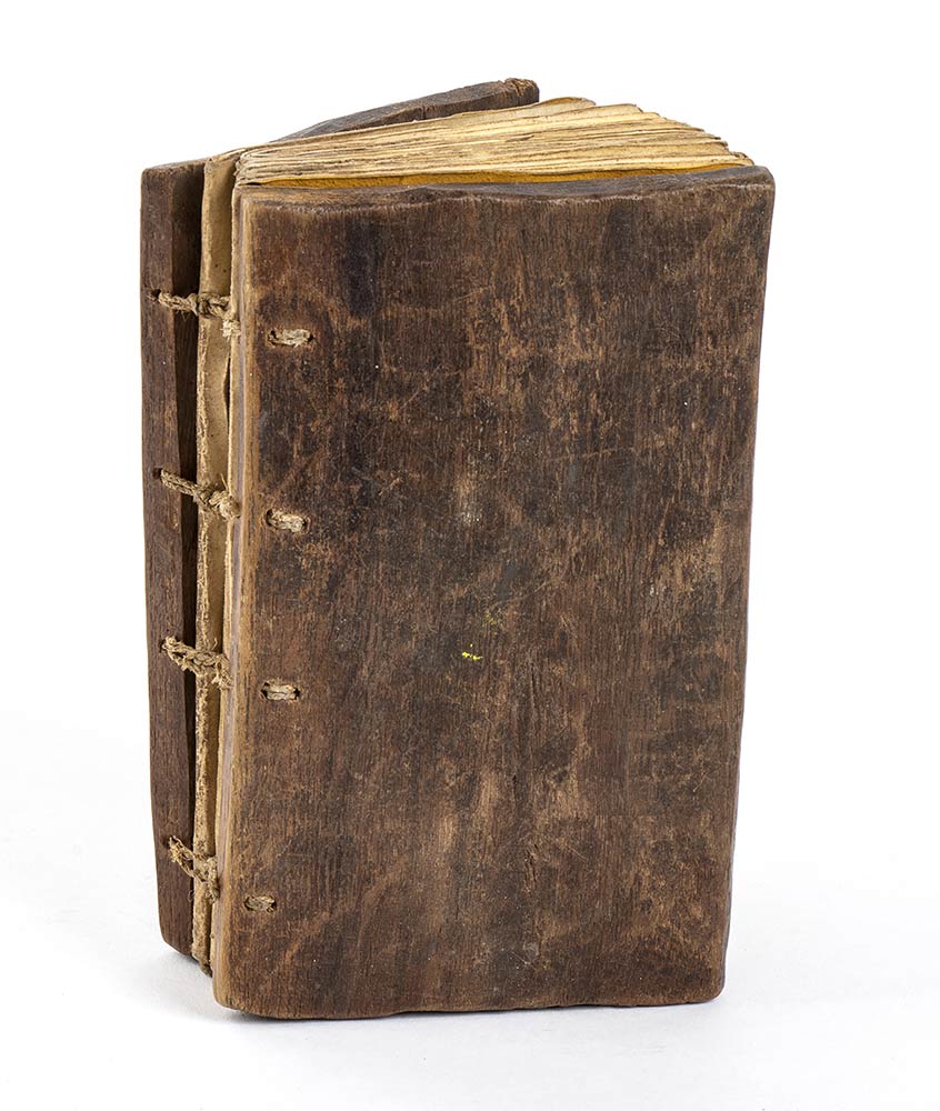 Copertina in legno, i fogli in pergamena, due illustrazioni dipinte in policromia.