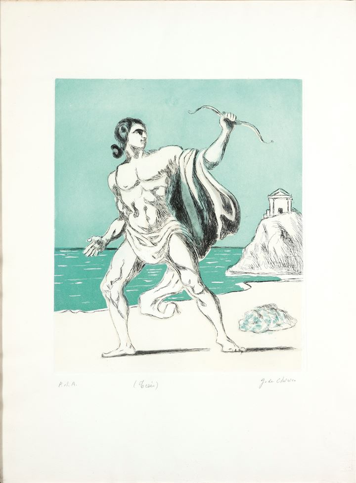 DE CHIRICO GIORGIO Volos 1888 - 1978 Roma Teseo 69x51 foglio, 42x35...
