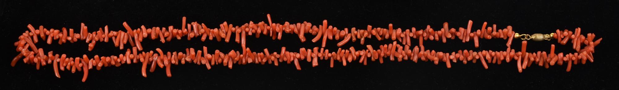COLLANA IN CORALLO naturale a bastoncini, chiusura in argento cm 70